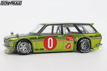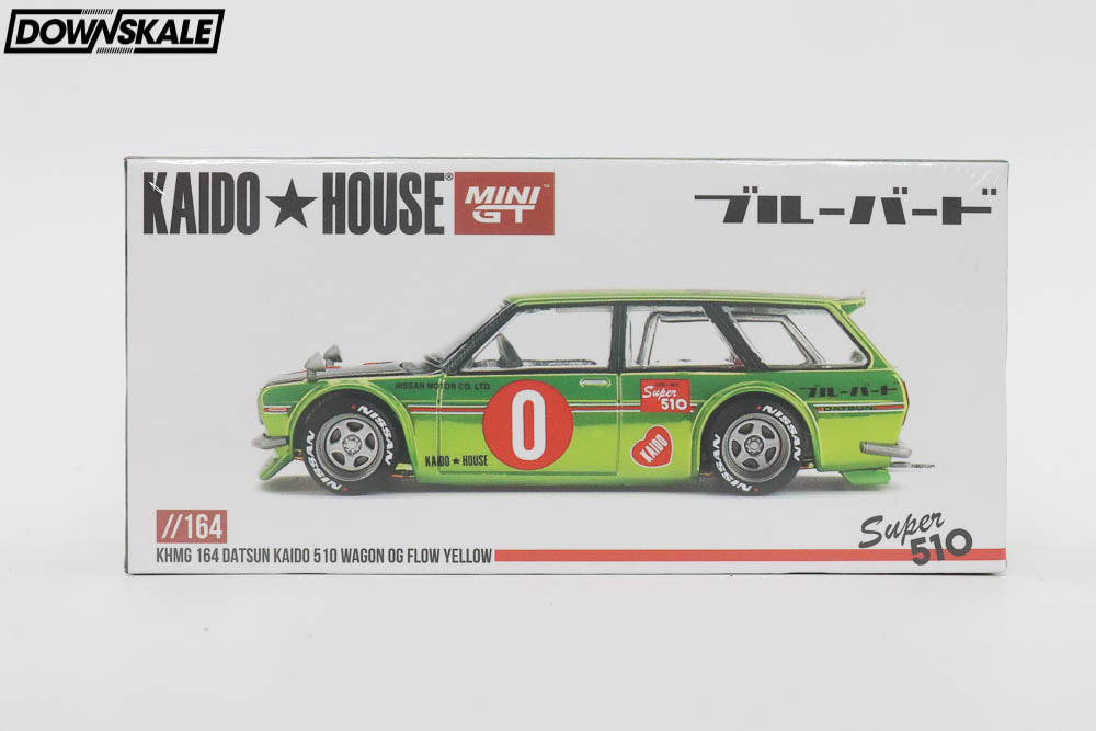 The Kaido House Datsun KAIDO 510 Wagon OG Flow in Chrome Yellow is a bold statement piece for JDM and diecast enthusiasts. Featuring the signature OG Flow widebody design, deep-dish wheels, and detailed racing livery, this 1:64 scale model blends old-school Datsun charm with Kaido House’s signature tuning style.