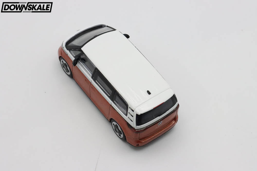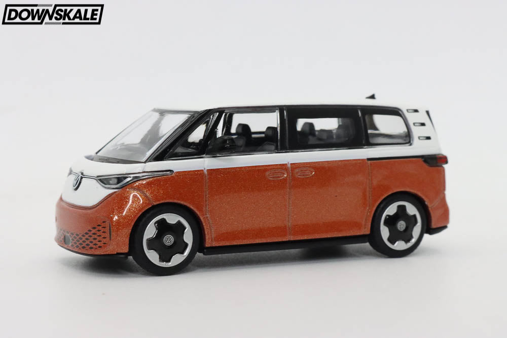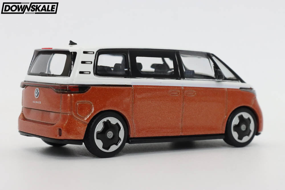 The future of mobility meets retro charm in MINI GT’s rendition of the Volkswagen ID. Buzz. Dressed in a vibrant Candy White and Energetic Orange two-tone colorway, this 1:64 scale model pays tribute to the original Microbus while showcasing the clean lines of its modern electric successor.