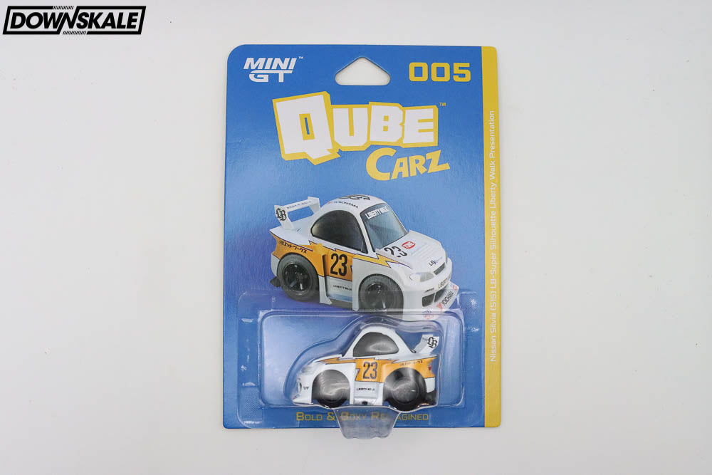 This QubeCarz Series 1 release presents the Nissan LB-Super Silhouette S15 Silvia in Liberty Walk’s signature presentation livery. With its over-the-top widebody silhouette and playful proportions, it delivers the perfect mix of attitude and charm.
