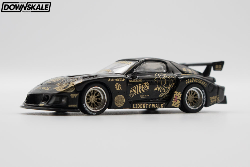 MINI GT presents the Mazda RX-7 FD in Liberty Walk’s extreme Super Silhouette style, finished in the eye-catching FD-NILES livery. With its exaggerated widebody, towering rear wing, and track-inspired aero, this release captures the fusion of Japanese rotary legend and Liberty Walk’s bold racing influence.