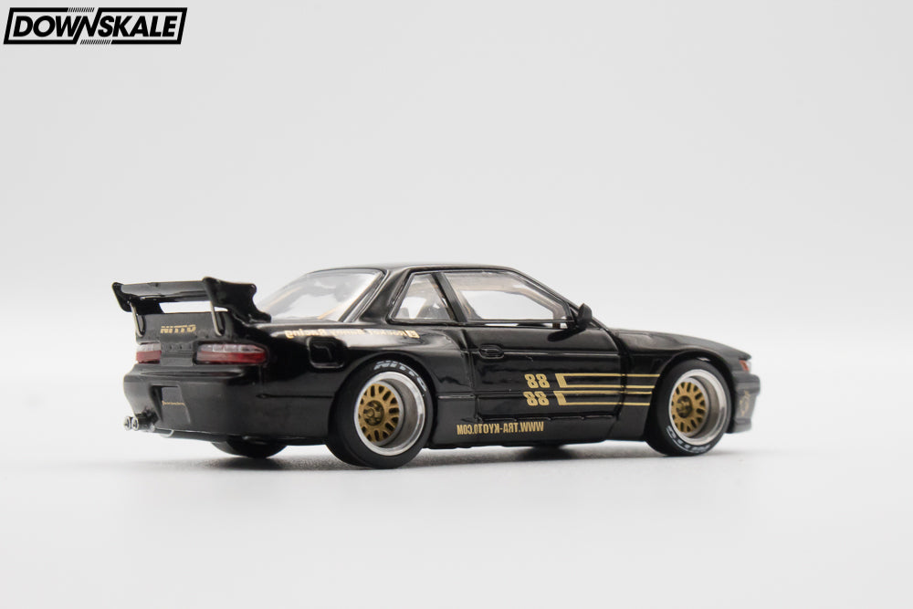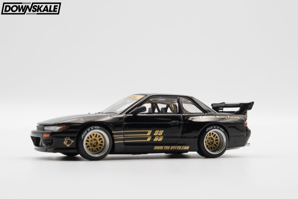 A drift-era icon reimagined through modern widebody design, this Pop Race Silvia S13 wears a Pandem kit that transforms the classic chassis into a low, aggressive street build. Finished in black, the clean colorway amplifies the S13’s sharp lines and motorsport-inspired stance.